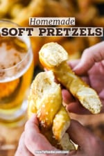 In the unlikely event that you have leftover soft pretzels, you can store them in a large freezer baggie on the counter for up to 5 days. They freeze beautifully, too!