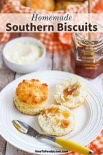 Southern Buttermilk Biscuits are so light, flaky, and just downright delicious. We’ll show you the tricks to making the best country biscuits ever! And it’s much easier than you might think! And, of course, you’ll want to whip up a batch of homemade biscuits and gravy!