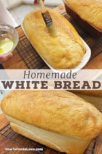- Brush the loaves with some of the melted butter and then bake the loaves for 30 minutes, rotating halfway through, or until golden brown. If browning too much on top, cover the bread loosely with foil.