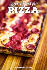 Use a Deep Dish Pan: This pizza is known for its thick, crispy crust and deep dish pan. Use a square or rectangular pan that is at least 2 inches deep to achieve the signature crust. Take note in the recipe (and in the Notes) of how much dough and cheese you’ll need to use for each sized pan.