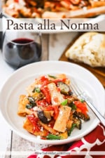 Choosing the right cheese – Ricotta Salata is the traditional cheese used in Pasta alla Norma, but it can be hard to find outside of Italy. However, you can find it at gourmet food shops and specialty cheese shops. Crumbled feta cheese is very similar in texture and taste (though it’s a little more pronounced). If we can’t get our hands on ricotta selata, then we go with a combination of crumbled feta and grated pecorino-romano or parmesan.