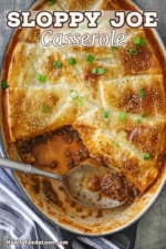If you love sloppy Joe sandwiches as much as we do, you are going to fall in love with this instant family-favorite casserole. The filling has the classic sloppy Joe flavor, and that’s topped with a layer of gooey cheddar cheese, topped with buttery puff pastry, and baked to perfection. Weeknight dinner never tasted so good!
