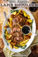 Lamb shoulder is a beautifully marbled cut, but it releases a significant amount of rendered fat during its long roast. To ensure your red wine jus is silky and concentrated rather than greasy, we highly recommend using a fat separator—a specialized pitcher that pours from the bottom, allowing you to easily drain the flavorful juices while leaving the oil behind.