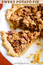 We love all kinds of Thanksgiving and other holiday desserts including Pecan Pie, Pumpkin Pie, and Sweet Potato Bundt Cake. This pie right here has quite possibly become our most favorite pie of all time. It’s similar to pumpkin pie and pecan pie. The filling is not too sweet and works perfectly with the crumbly and mildly sweet pecan topping. Amazing!