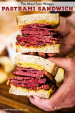 EXPERT TIP: If you’re wanting to make the best of the best, order your wagyu pastrami from Gourmet Food Store. You’ll get an 8 lb cut of meat that has been brined for days, smoked for hours, and steamed to perfection for hours. It’s going to cost a little extra, but the end result is phenomenal. The pastrami freezes beautifully, too.